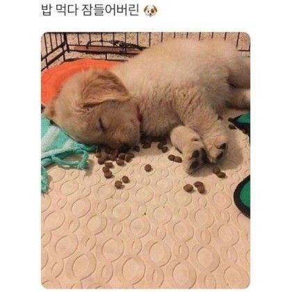 갈때까지간놈뭘 밥먹다 잠들어? 딱봐도 자는 강아지 주위에 뿌려놨고만 하여튼 주작질은