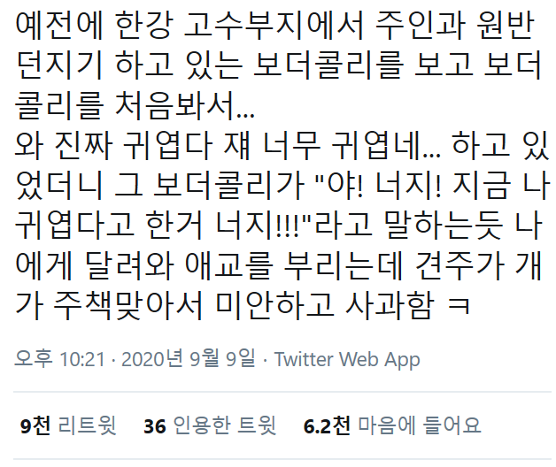 참고로 보더콜리는 가장 똑똑한 강아지 1위임